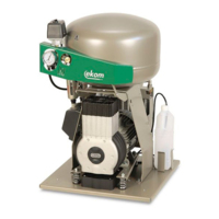 EKOM DK50 PLUS M - безмасляный компрессор для 1-й стоматологической установки без кожуха, с осушителем, с ресивером 25 л