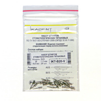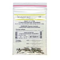 Штифт титановый внутриканальный IkaDent №B20, пассивный, для реставрации частично разрушенной коронки зуба, цилиндр, D=2.2/1.2 мм, L=3.7/6.7 мм, 24 шт + 1 инструмент