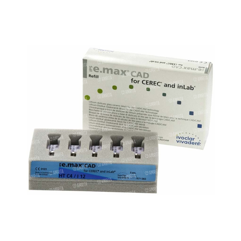 Блоки из стеклокерамики IPS e.max CAD for CEREC and inLab HT I12 благодаря своей высокой транслюцентности, аналогичной прозрачности живой эмали, идеально подходят для фрезерования полноанатомических реставраций (техника окрашивания) вкладок типа Inlay, Onlay, частичных коронок и виниров. Выпускаются в 16 цветах A–D и 4 цветах Bleach BL.