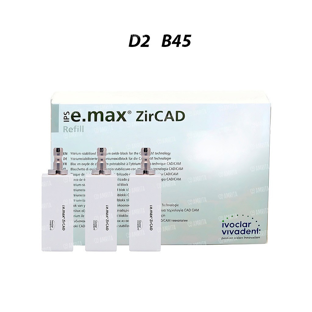 Блоки IPS e.max ZirCAD из циркония предназначены для изготовления высоко эстетичных коронок и мостовидных протезов на три единицы во фронтальном или в боковом отделе. Реставрации с IPS e.max ZirCAD состоят из оксида циркония средней прозрачности и оксида циркония высокой прозрачности, что обеспечивает максимально естественный переход цвета и прозрачности от области дентина к режущему краю.