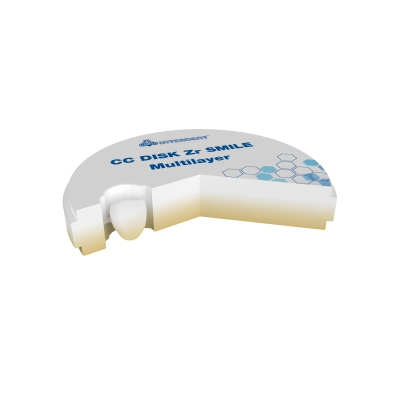 CC DISK Zr SMILE Multilayer выполнен из биосовместимого предварительно спеченного ZrO2. Благодаря его исключительного пропускания света 49% на 1 мм и прозрачности, которая близка дисиликату лития, предназначен для эстетических решений в переднем секторе. Соответствует стандарту EN ISO 6872 стоматологической керамики.