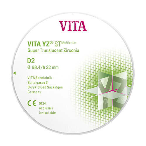 VITA YZ ST Multicolor - супер транслюцентный диоксид циркония, в цветах естественных зубов, цвет D2, 98,4х22 мм
