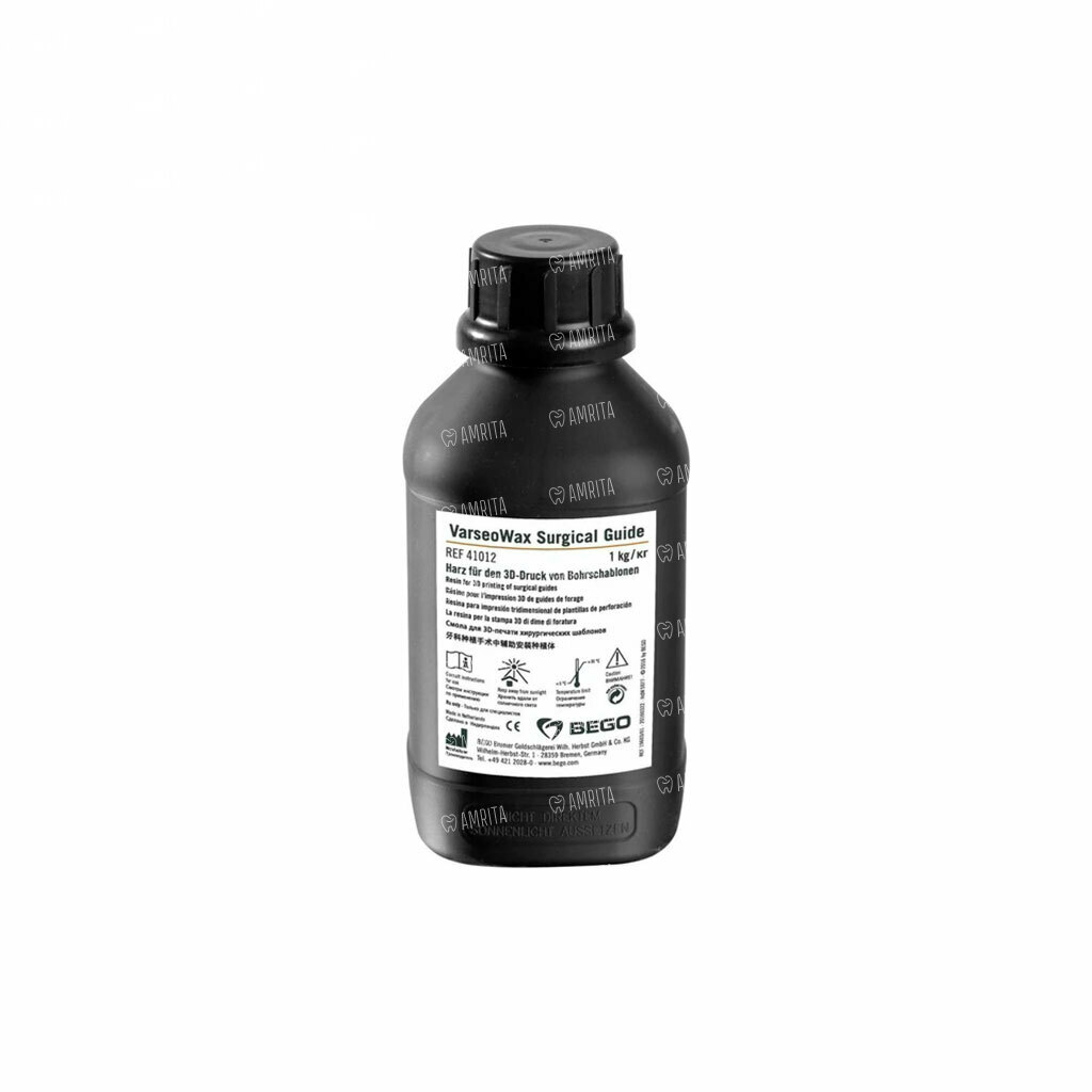 Материал для 3D-печати VarseoWax Surgical Guide от бренда Bego — это биосовместимый полимер, специально разработанный для изготовления высокоточных хирургических шаблонов для имплантологии. Этот материал класса I обеспечивает максимальную точность и стабильность размеров, что является критически важным для точного позиционирования имплантатов во время операции.