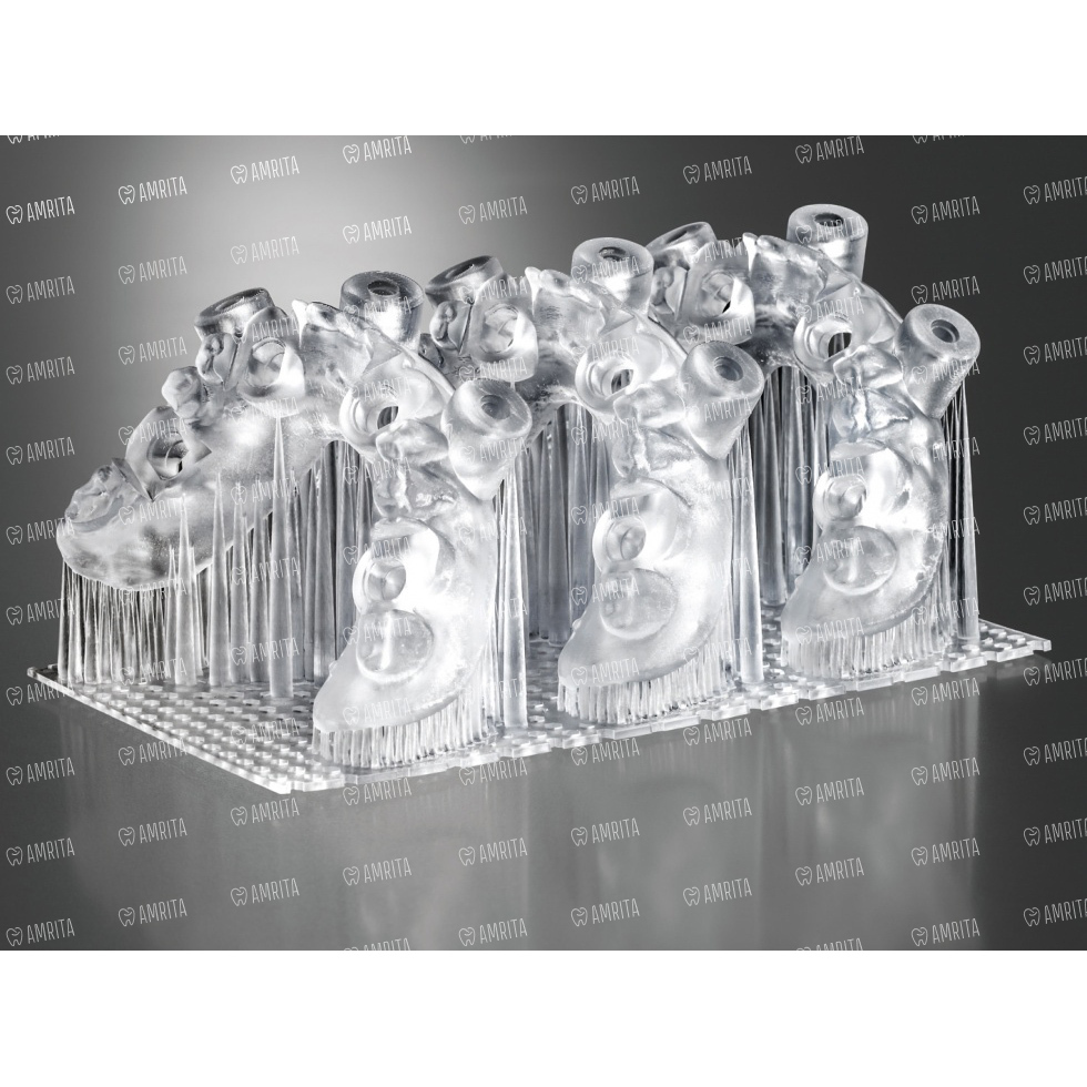 Биосовместимый светоотверждаемый материал для 3D-печати, предназначенный для изготовления базисных частей ортодонтических конструкций, шаблонов для сверления и рентгена, а также прикусных и фиксирующих шин. Этот полимер сочетает в себе высочайшую механическую прочность, надежность процесса и простоту в последующей обработке, обеспечивая превосходный результат.