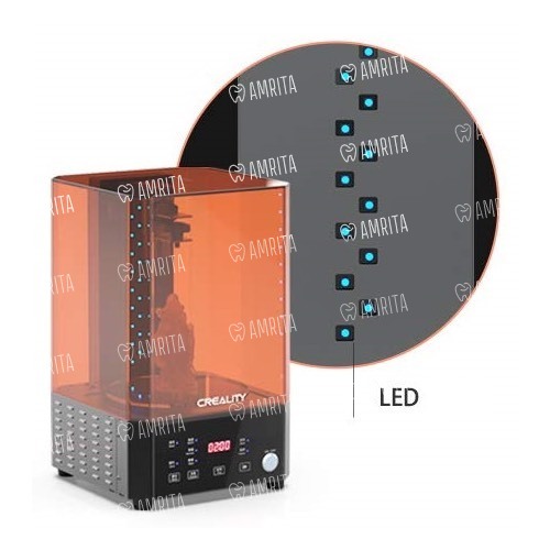 - Равномерное отверждение: вращающаяся на 360° платформа и вертикальный массив УФ-светодиодов обеспечивают равномерную засветку модели со всех сторон для полной и однородной полимеризации.