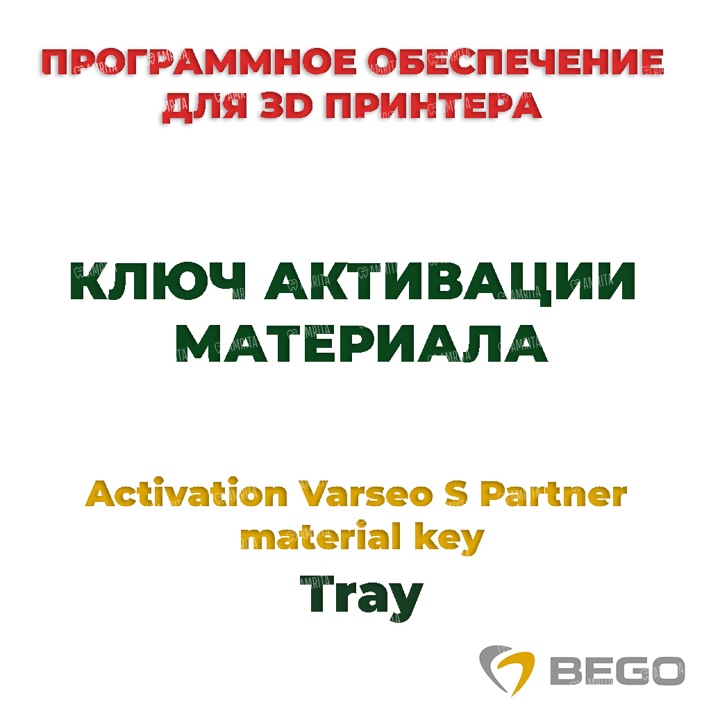 Ключ активации материала Activation Varseo S Partner material key Tray от международного бренда Bego позволит максимально легально работать на зуботехническом цифровом устройстве.