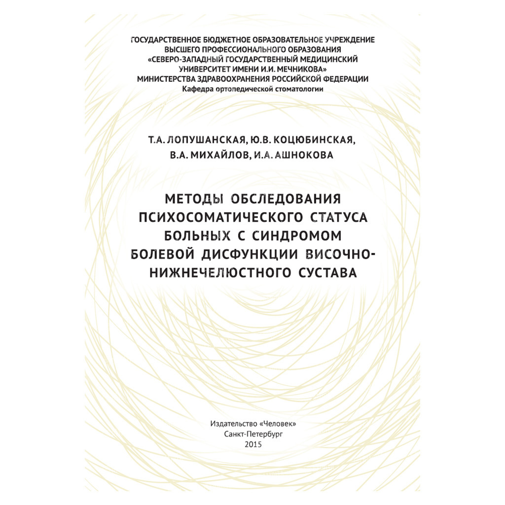 В учебном пособии рассматривается проблема диагностики клинических проявлений и объективизации жалоб психосоматического характера у пациентов с синдромом болевой дисфункции височно-нижнечелюстного сустава.