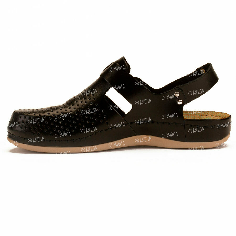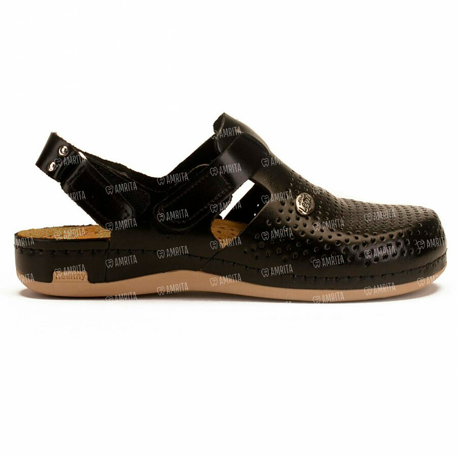 Женские тапочки-сабо Леон 951 — стильная и модная модель обуви из натуральной кожи. Закрытый носок и классический дизайн делают модель универсальной обувью для летних прогулок или ежедневного ношения на работе. ЛЕОН сабо 951 имеют хорошую перфорацию, создающую комфорт и предотвращают потоотделение. Элегантный ремешок, застегивающийся сбоку, дополнительно фиксирует обувь на ноге, позволяя осуществлять корректировку ширины модели.