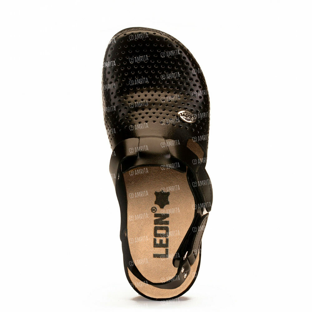 Женские тапочки-сабо Леон 951 — стильная и модная модель обуви из натуральной кожи. Закрытый носок и классический дизайн делают модель универсальной обувью для летних прогулок или ежедневного ношения на работе. ЛЕОН сабо 951 имеют хорошую перфорацию, создающую комфорт и предотвращают потоотделение. Элегантный ремешок, застегивающийся сбоку, дополнительно фиксирует обувь на ноге, позволяя осуществлять корректировку ширины модели.