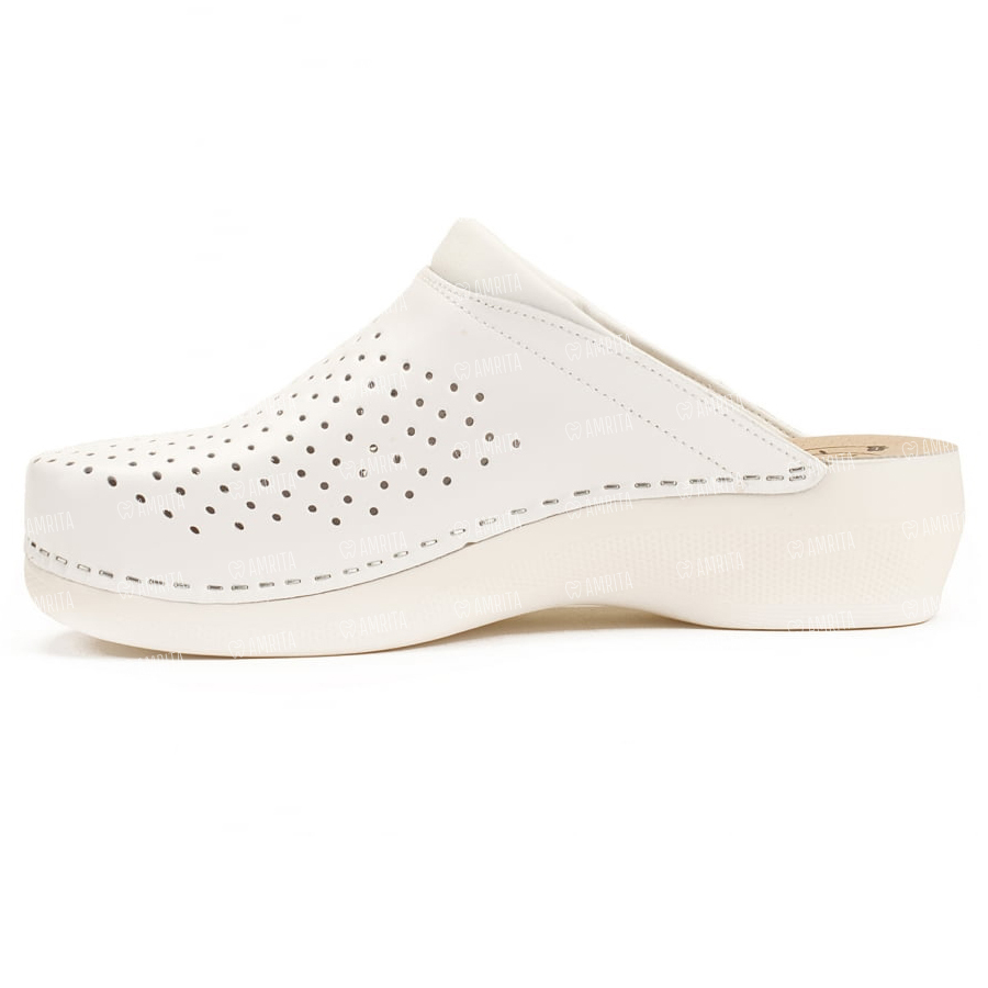 Женские сабо Леон PU100 выполнены из высококачественной натуральной кожи белого цвета с перфорированным верхом, за счет чего, внутри создает комфортный климат и кожа ног "дышит". Модель имеет удобную конструкцию, учитывающую анатомические особенности стопы. Антистатическая полиуретановая подошва способствует профилактике усталости ног и эффективно снимает излишнюю нагрузку на стопы. Невысокий квадратный каблук создает дополнительный комфорт и делает сабо еще более стильными и элегантными. Сабо Леон отличаются хорошей воздухопроницаемостью, что предотвращает влажность ног и излишнее потоотделение, а также останавливает развитие грибковых заболеваний.
