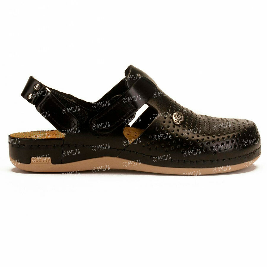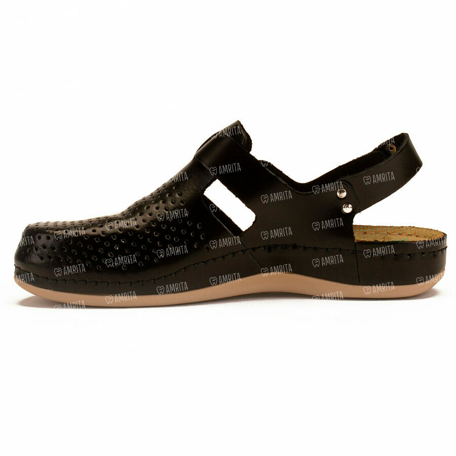 Женские тапочки-сабо Леон 951 — стильная и модная модель обуви из натуральной кожи. Закрытый носок и классический дизайн делают модель универсальной обувью для летних прогулок или ежедневного ношения на работе. ЛЕОН сабо 951 имеют хорошую перфорацию, создающую комфорт и предотвращают потоотделение. Элегантный ремешок, застегивающийся сбоку, дополнительно фиксирует обувь на ноге, позволяя осуществлять корректировку ширины модели.