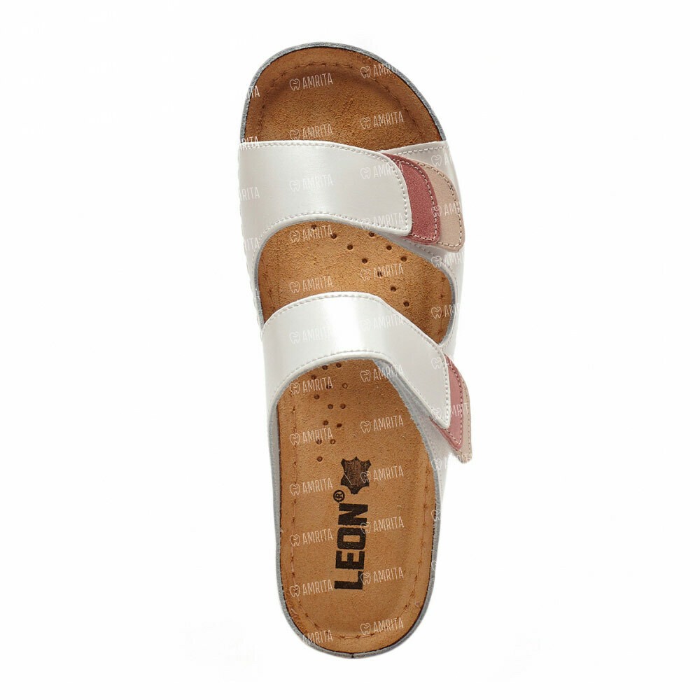 Модель Леон 904 — классические тапочки сабо для женщин. Данная модель имеет удобную толстую платформу, которая выполнена из полиуретана и обладает противоударными свойствами, к тому же анатомическая стелька, сделанная из кожи и мемори-пены, существенно снижает давление на стопу и снимает усталость. Сабо Леон 904 фиксируется плотно по ноге за счет двух липучек.