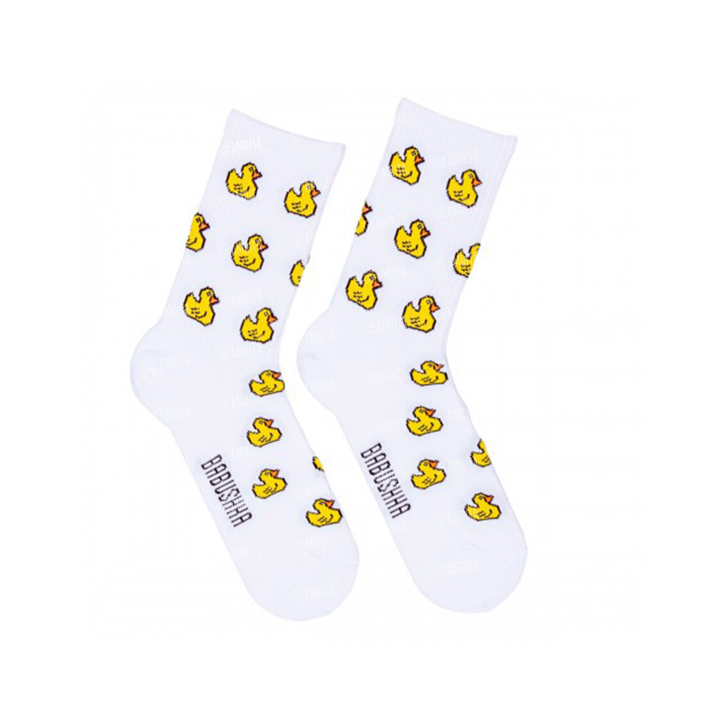 Спортивные носки с маленькими уточками Babushka. Сделаны из натурального хлопка высокого качества. Пятка и мысок усилены, что продлевает срок службы носка.
