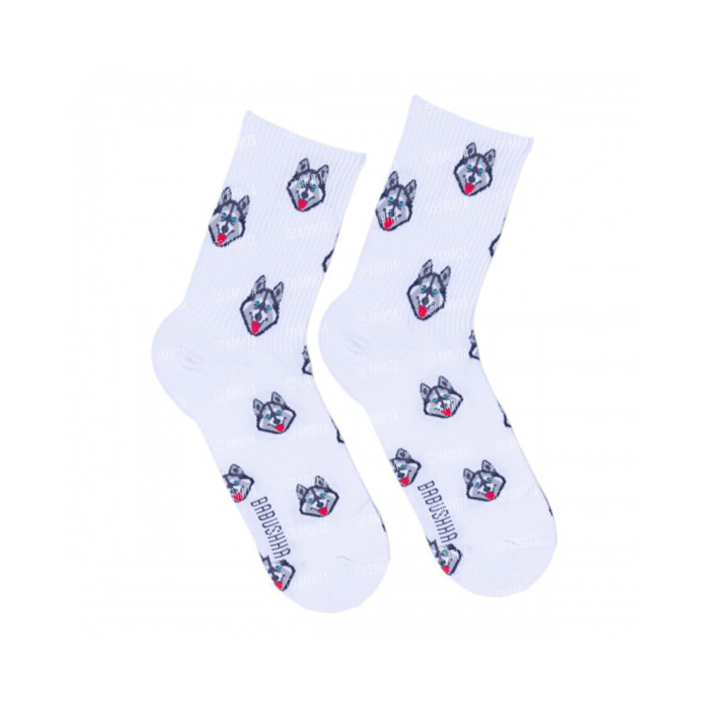 Спортивные носки с хаски Babushka. Сделаны из натурального хлопка высокого качества. Пятка и мысок усилены, что продлевает срок службы носка.