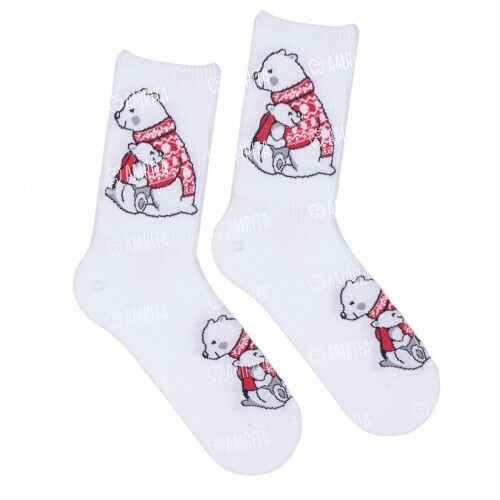 Спортивные носки с медведями Babushka. Сделаны из натурального хлопка высокого качества. Пятка и мысок усилены, что продлевает срок службы носка.
