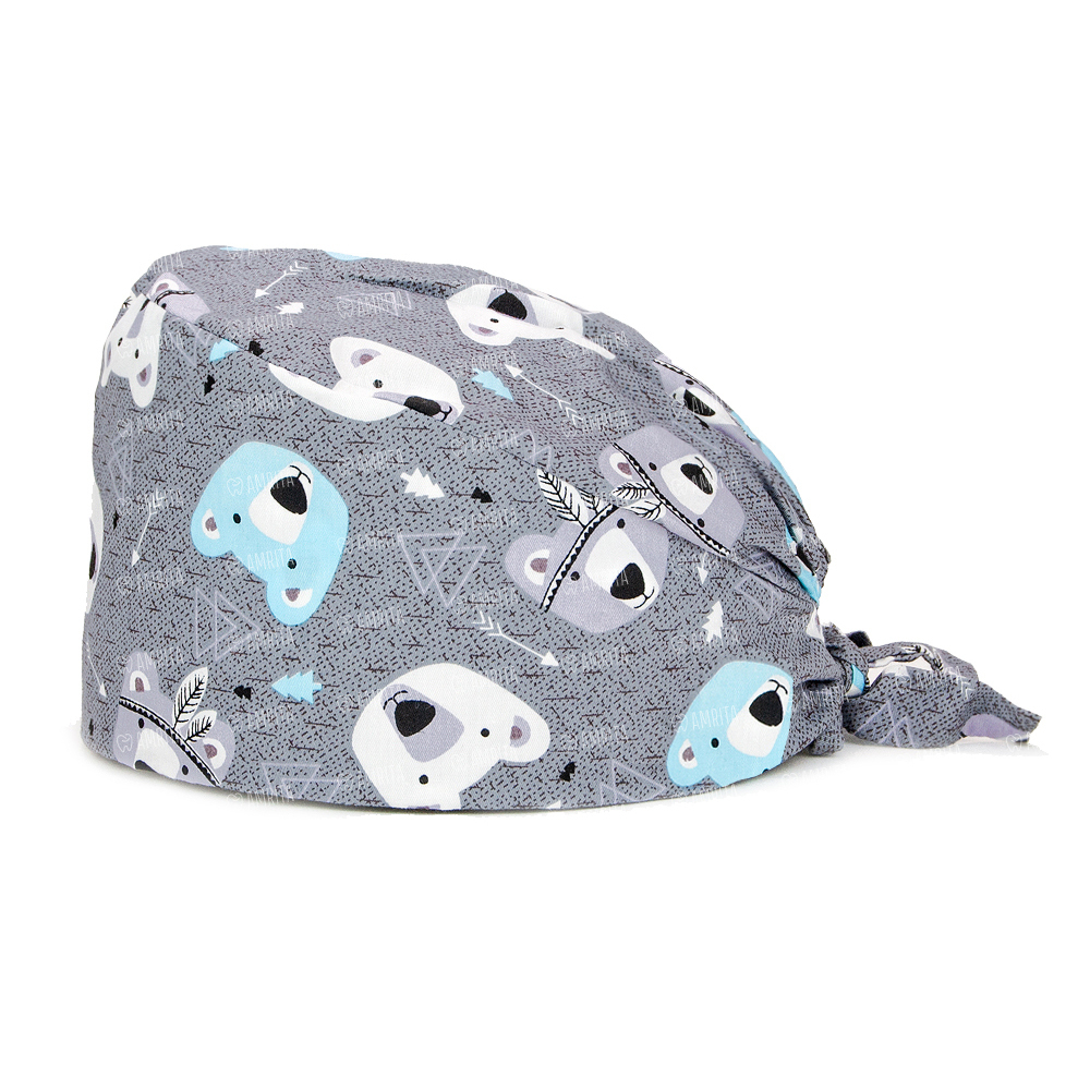 Шапочка медицинская, принт "Мишки", серая
