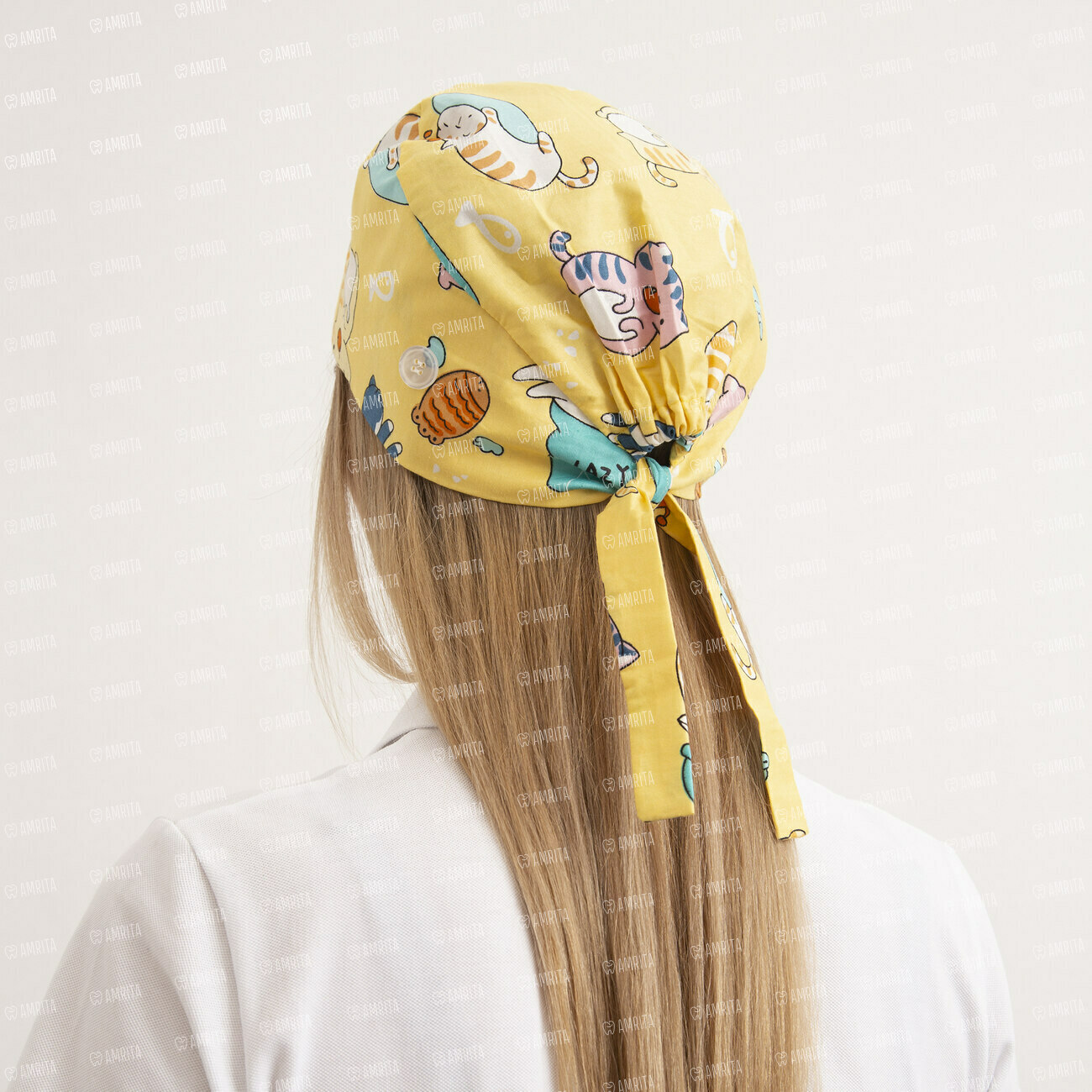 Шапочка медицинская, принт "Ленивые котята", оранжевый