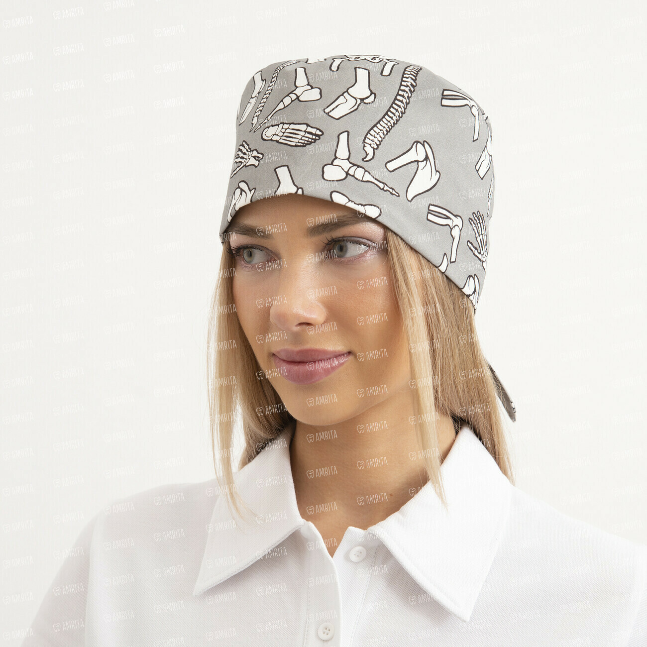 Шапочка медицинская, принт "Кости", серый
