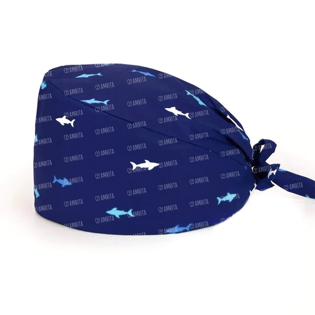 Шапочка медицинская, мелкий принт "Акулы", синий