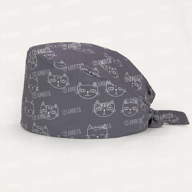 Шапочка медицинская, принт "Коты", серый
