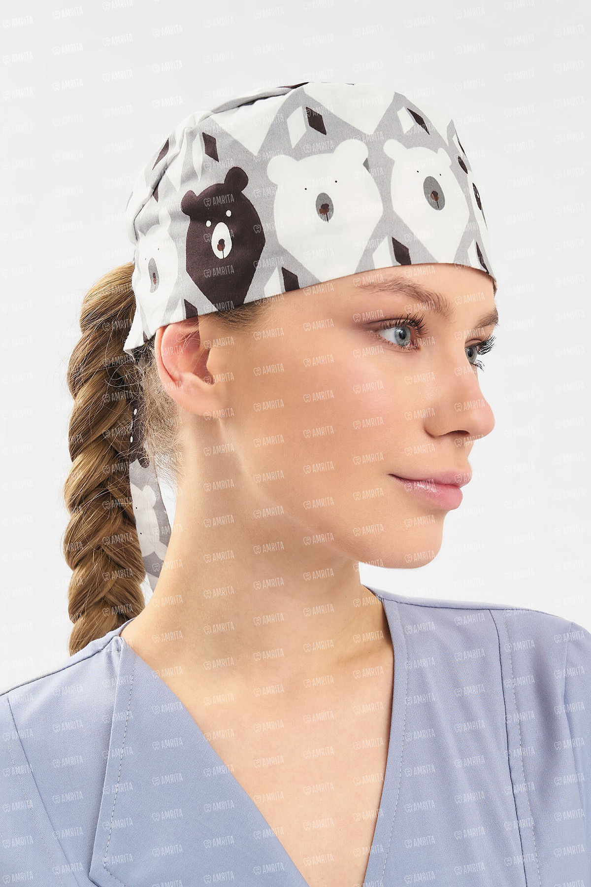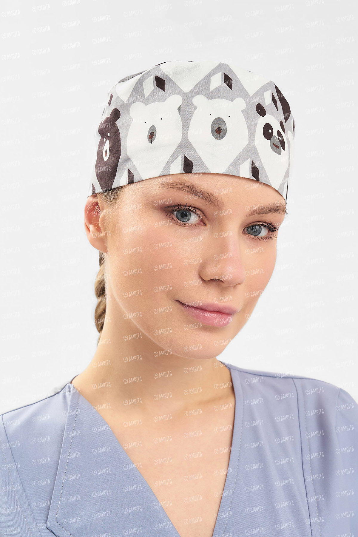 Шапочка медицинская Тезис TZ002, принт "Медведи", серый