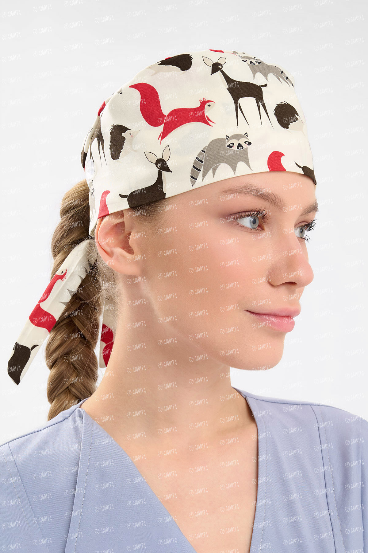 Шапочка медицинская Тезис TZ002, принт "Лесные звери", белый