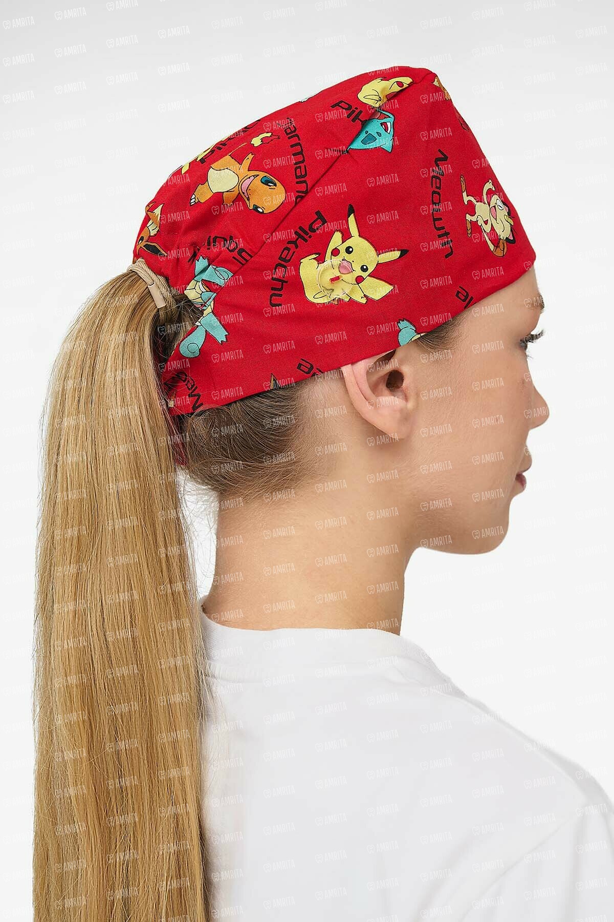 Шапочка медицинская Тезис TZ002, принт "Пикачу", красный