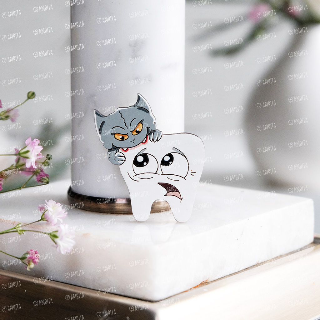 Брошь для стоматологов "Зубик с кариесом". Злобный кариес хочет съесть зубик! Чтобы этого не допустить, важно чистить зубы и не забывать про профилактику. Брошь разрисована вручную премиальными акриловыми красками, покрыта лаком. Крепится брошь на булавку сзади.