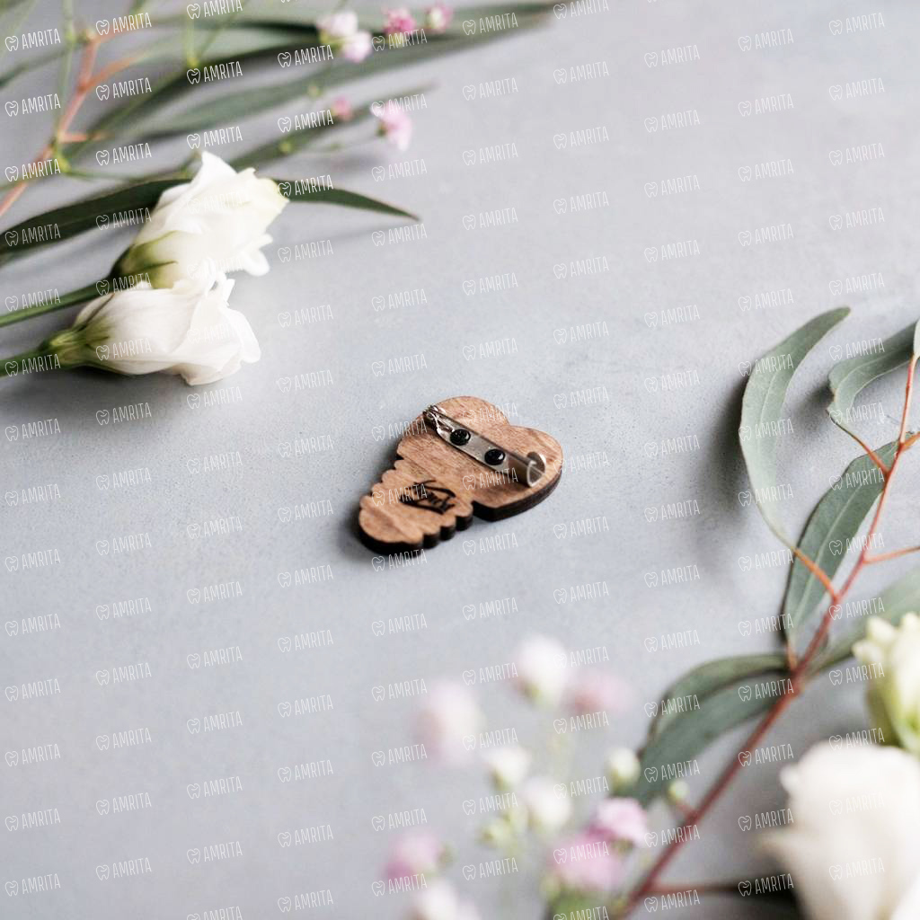 Деревянный значок для врача стоматолога. Оригинальный подарок для любимого врача. Ручная работа. Брошь покрыта защитным слоем лака. Крепление сзади — булавка. Каждый значок закреплен на тематическую бирку-открытку и дополнен крафт-пакетом.