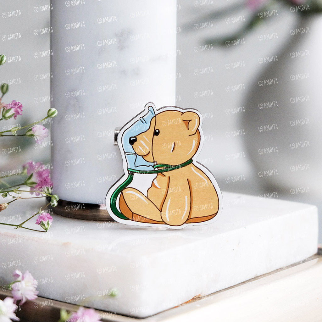 Деревянная брошь с мишкой и кислородной маской. Порадует врачей-анестезиологов. Брошь вручную расписана акриловыми красками, сверху покрыто лаком, чтобы защитить насыщенные краски.