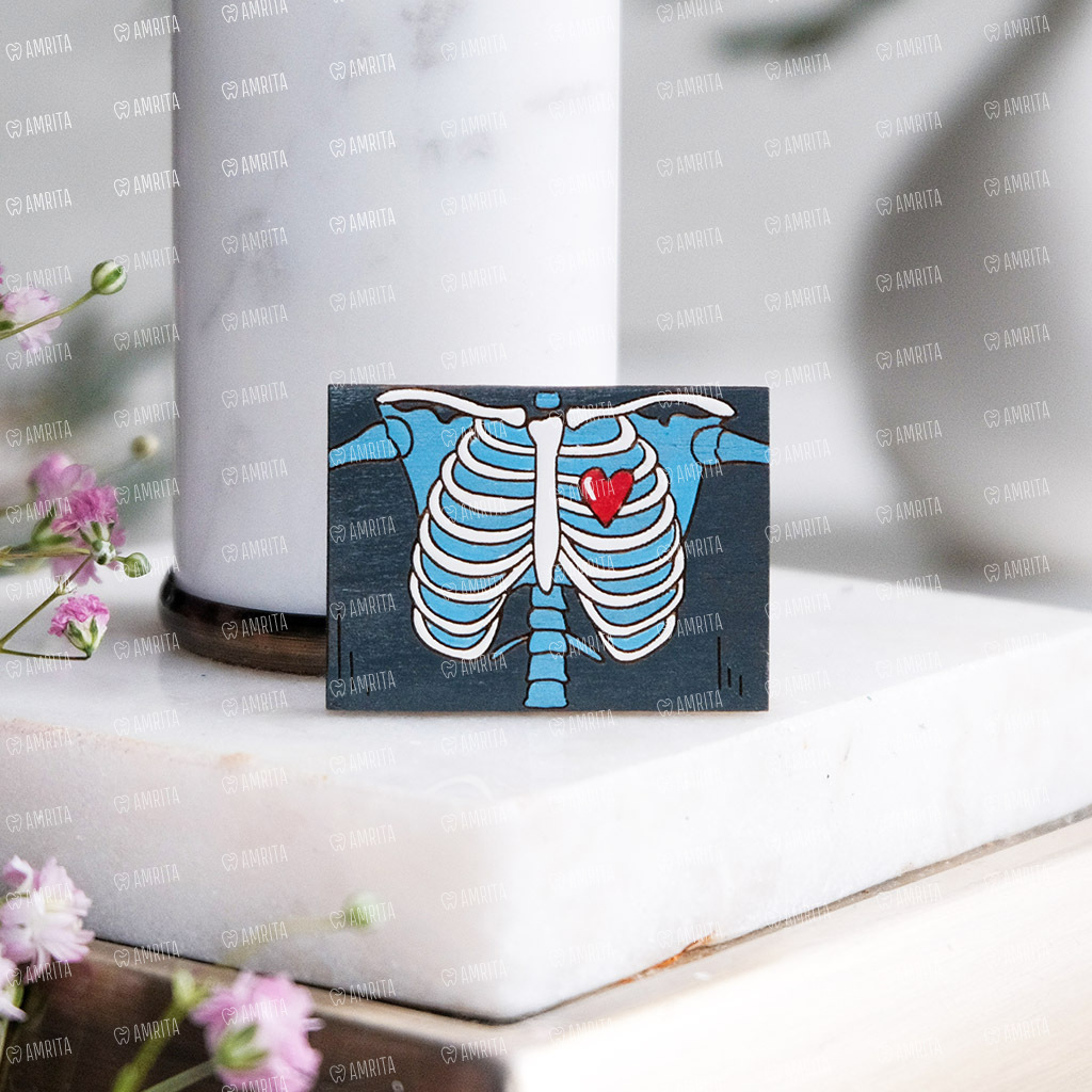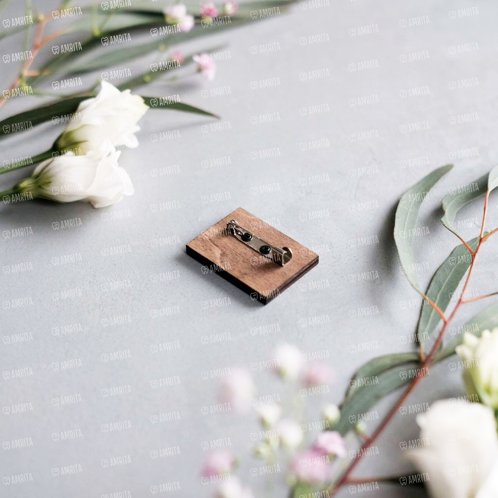 Деревянная брошь для врача-рентгенолога и не только. Ручная раскраска, оригинальный дизайн и защитный слой лака. Крепление сзади — металлическая булавка.