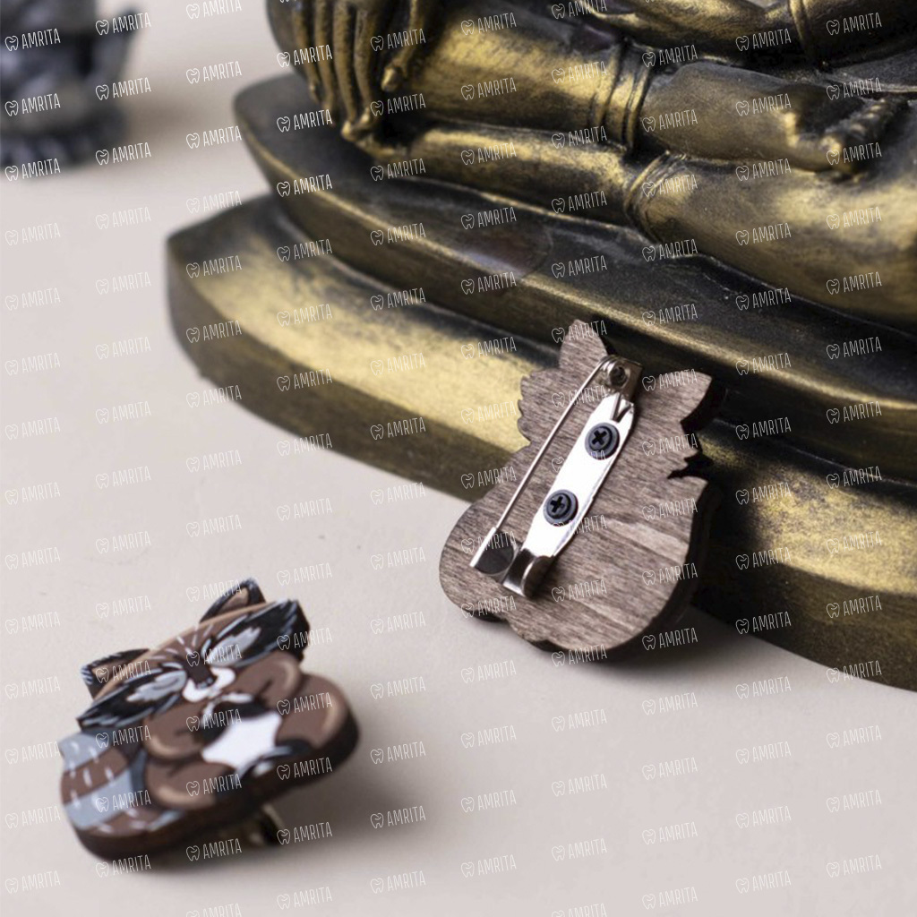 Брошь раскрашена вручную премиальными акриловыми красками, покрыта защитным слоем лака. Крепление сзади — булавка.