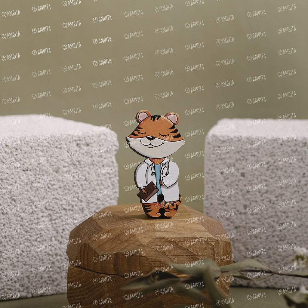 Значок “Доктор тигр” из дерева дополнит образ специалиста. Аксессуар расписан акриловыми красками, покрыт защитным лаком, чтобы краска держалась дольше. Крепится на булавку сзади.