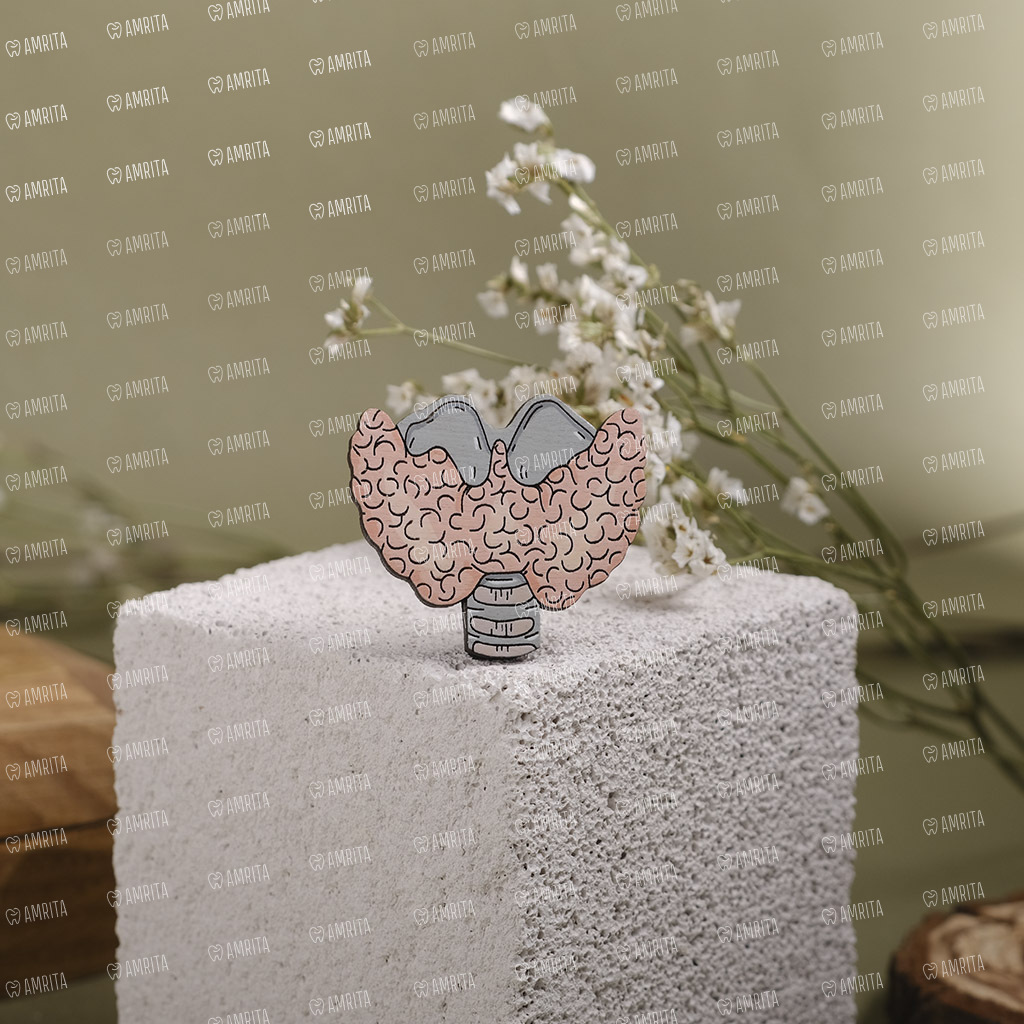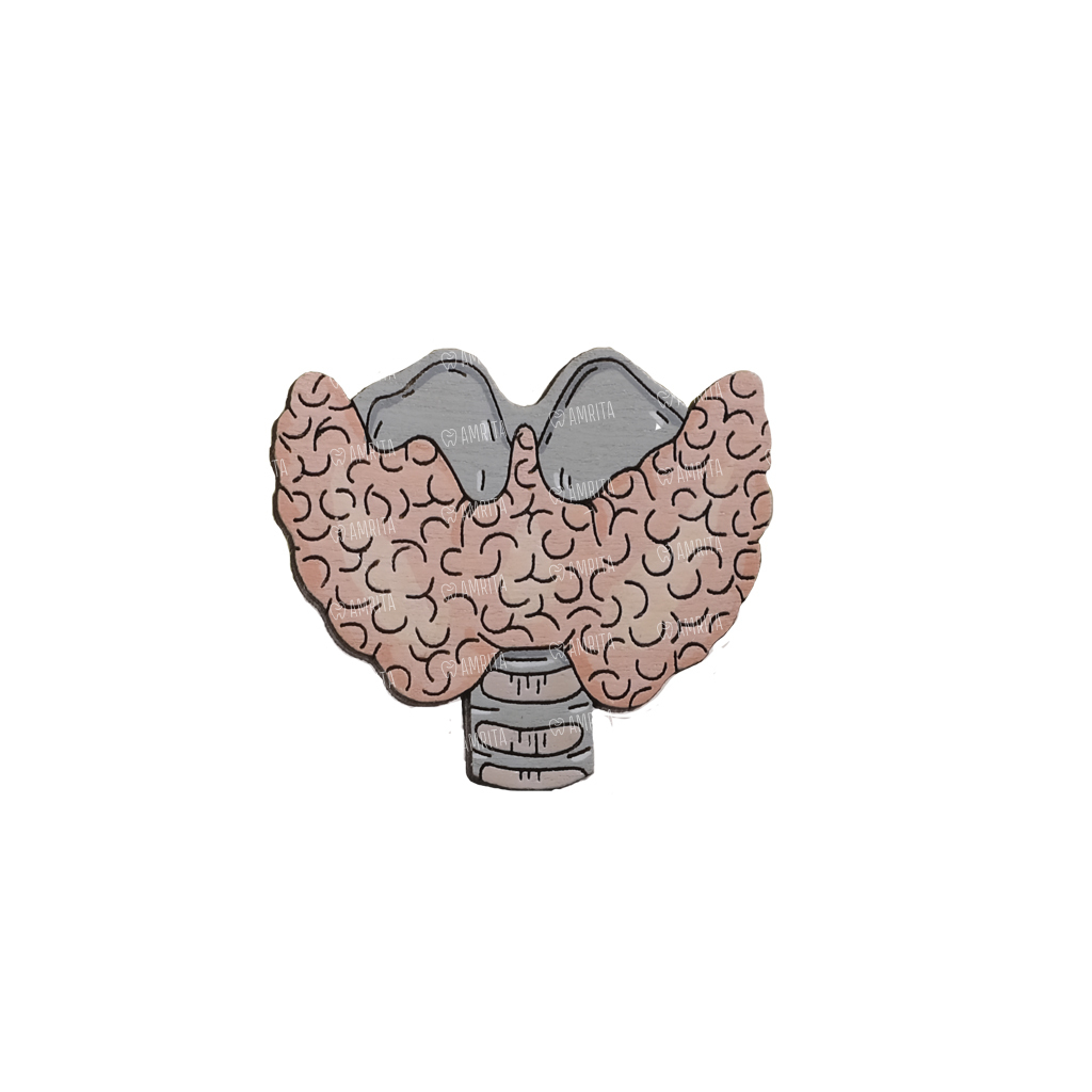 Значок “Щитовидка” — яркий аксессуар, который украсит униформу, добавит настроения на весь день. Сделан из дерева, раскрашен акриловыми красками и покрыт лаком для сохранения яркости красок. Крепится на булавку, которая расположена с тыльной стороны значка.