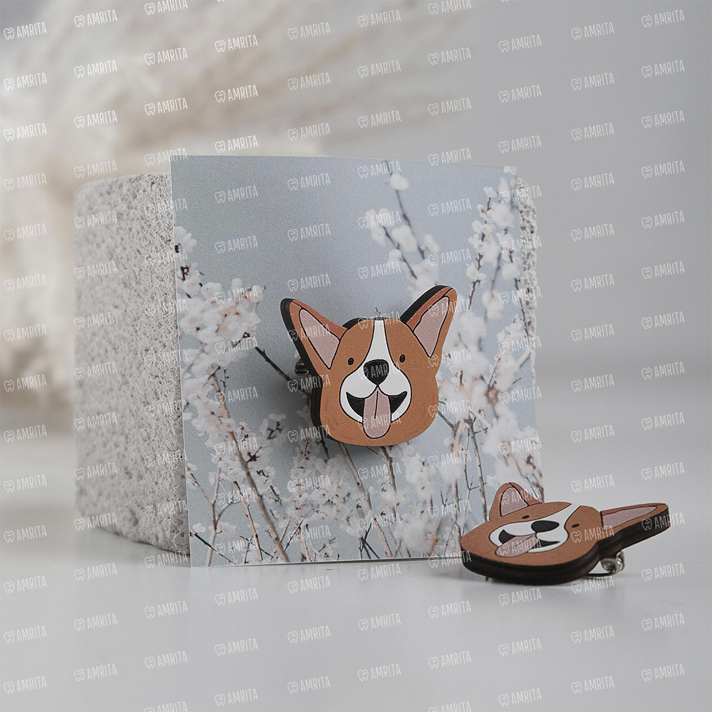 Значок "Коржик" в форме доброй собачки корги послужит или оригинальным дополнением к вашему образу, или станет добрым подарком вашим друзьям или коллегам. Значок сделан из дерева, раскрашен акриловыми красками вручную, а сверху покрыт лаком. Благодаря ему значок сохранит свои яркие цвета дольше. Крепится на булавку, которая расположена сзади.
