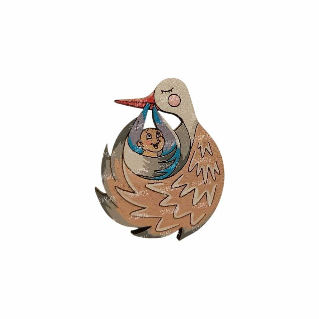 Значок AUGUST WOOD «Аист» с голубой пеленкой — это декоративный аксессуар ручной работы, разработанный для персонализации медицинской одежды и создания дружелюбной атмосферы на приеме. Изделие выполнено из натурального дерева и предназначено для врачей педиатров, акушеров-гинекологов и неонатологов. Легкий корпус и надежное крепление обеспечивают комфортное ношение в течение всей смены, не повреждая структуру ткани медицинского халата или костюма.