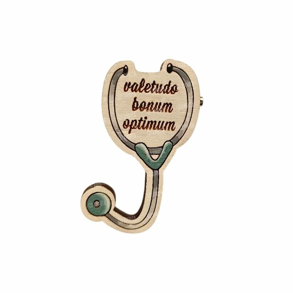 Значок AUGUST WOOD «Фонендоскоп», серо-зеленый, 1 шт