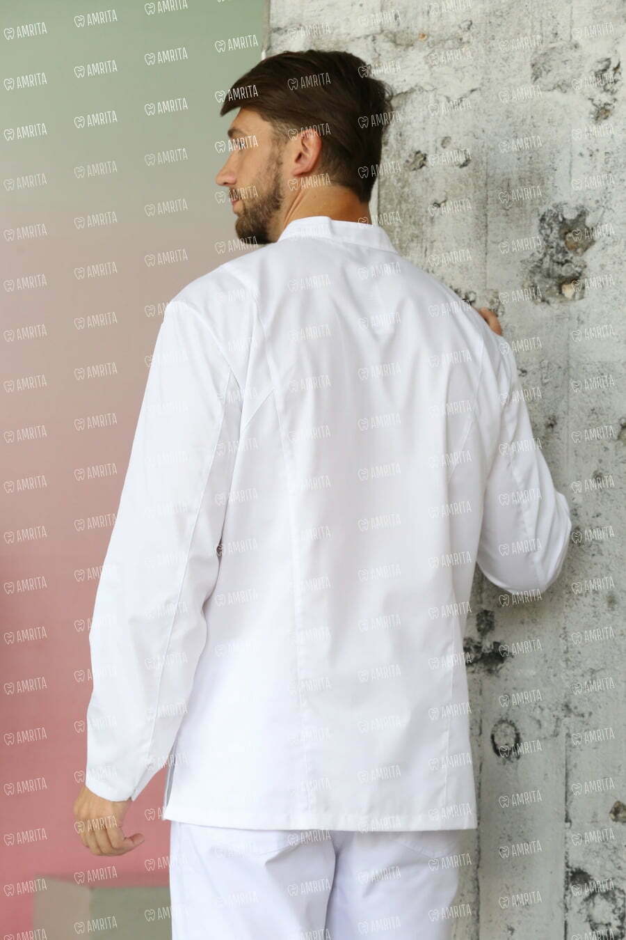 Блуза мужская медицинская "Олимп" белого цвета имеет длинный рукав, прямой силуэт, боковые карманы и воротник-стойку. Модель дополнена плечевой застежкой на кнопках, нагрудным и боковыми карманами, а также разрезами по бокам. За счет стильного кроя с асимметричной застежкой на кнопках блуза выглядит оригинально и необычно.