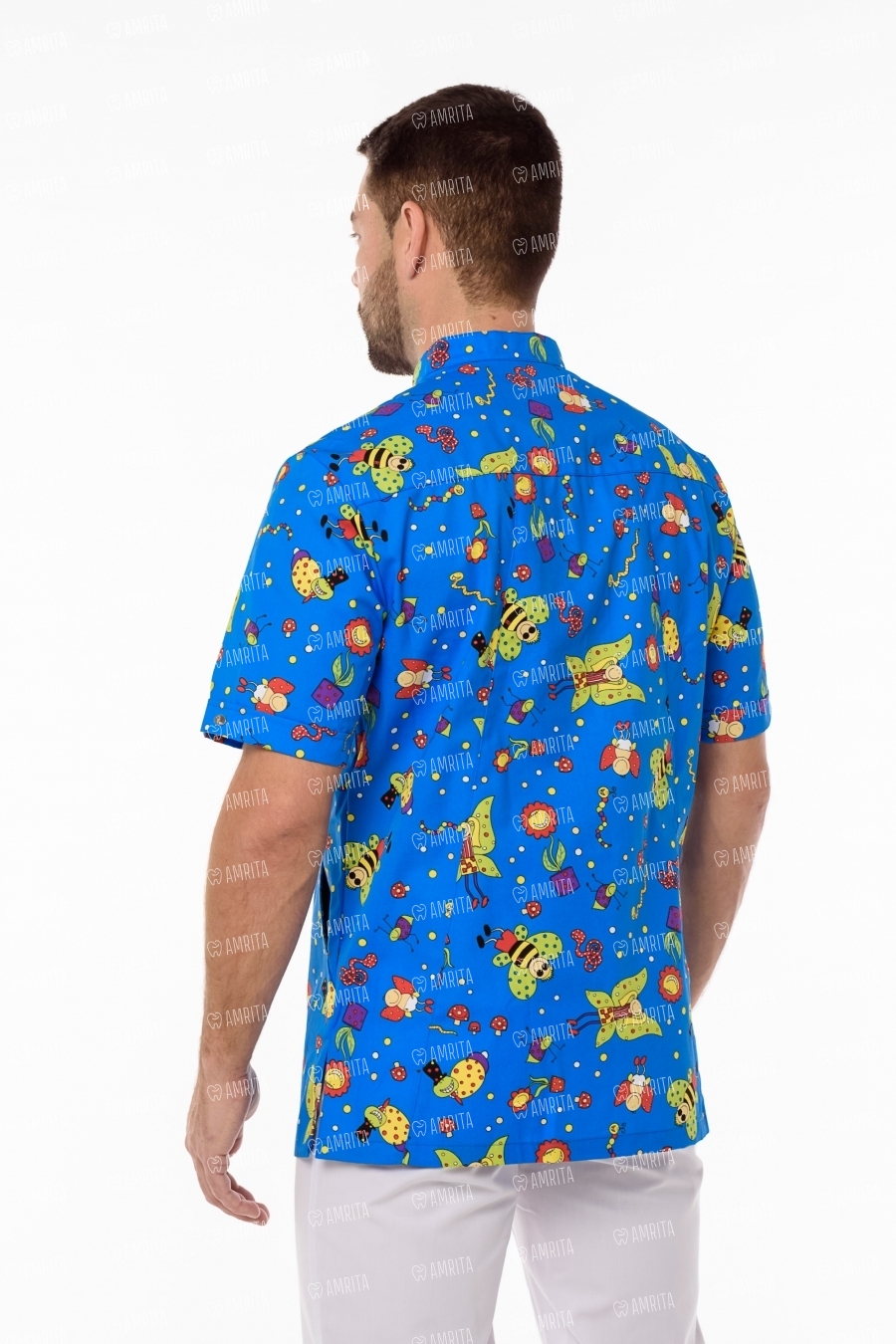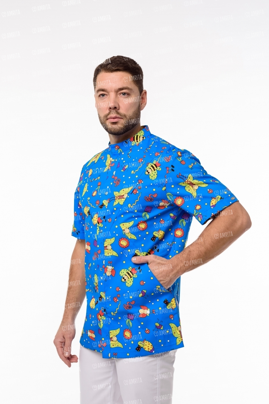 Мужская медицинская блуза с удобным коротким рукавом "Педиатр М" от бренда Доктор Стиль выполнена из ткани с оригинальным принтом. Модель имеет прямой силуэт, воротник-стойку, рациональные застежки спереди, боковые разрезы. Блузу дополняют три функциональных кармана: один нагрудный и два вместительных боковых кармана. Ткань плотная и износоустойчивая с повышенной мягкостью поверхности, прилегающей к телу.