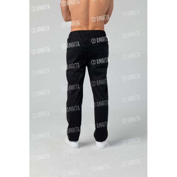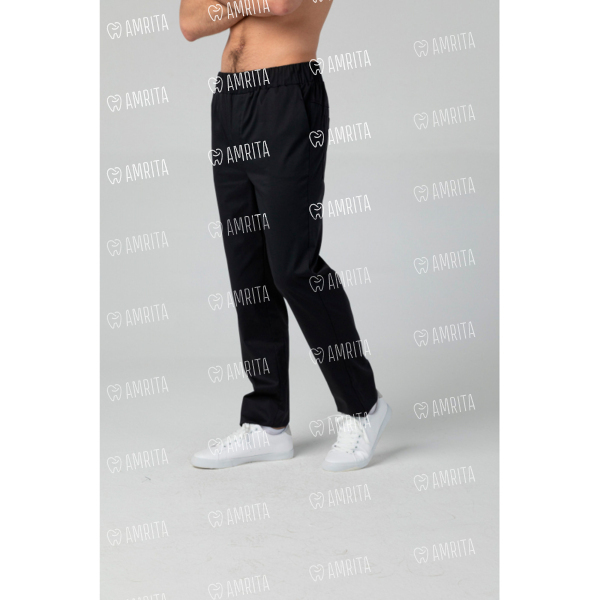 Брюки медицинские прямого кроя с эластичным поясом на резинке. Модель дополнена накладными карманами и разрезами в боковых швах снизу.