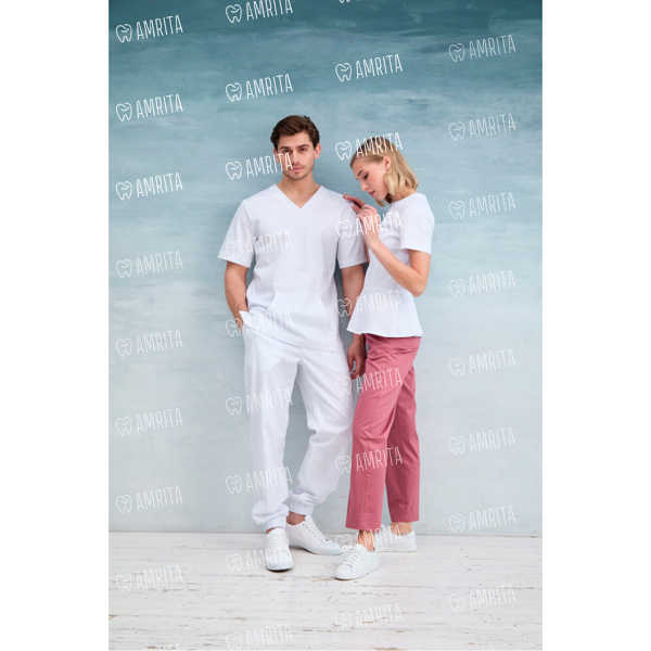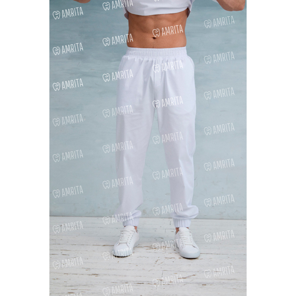 Удобные и стильные мужские медицинские брюки имеют среднюю посадку и зауженный к низу крой с манжетами на резинке. Модель дополнена карманами в боковых швах. Брюки идеально садятся на любой фигуре за счет удобного пояса на резинке.