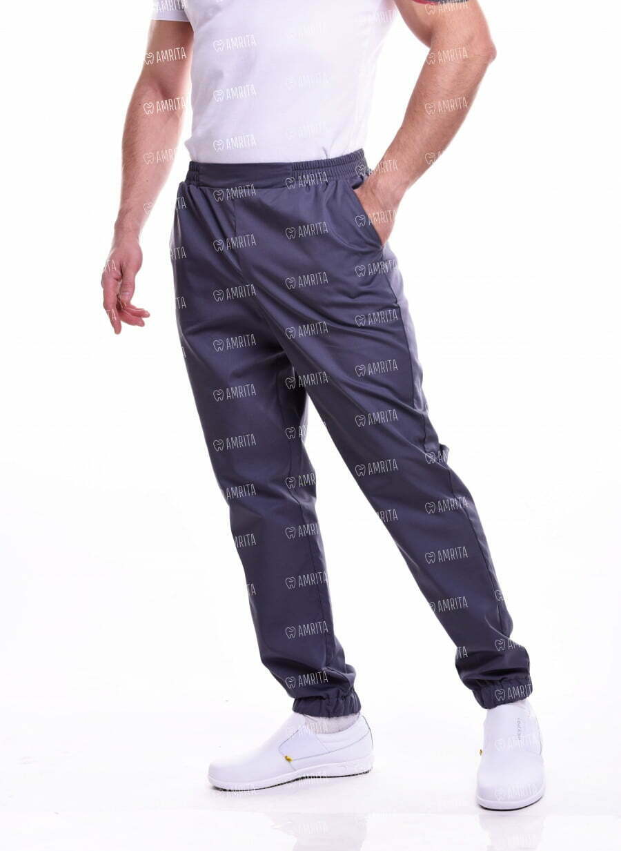 Мужские медицинские брюки "Релакс" имеют зауженный крой с полуприлегающим силуэтом. Модель дополнена комфортным эластичным поясом, двумя передними внутренними карманами и эластичными манжетами на резинке снизу. Ткань средней плотности, обладает стрейч-эффектом, за счет чего обеспечивает комфорт и удобство в течение рабочего дня.