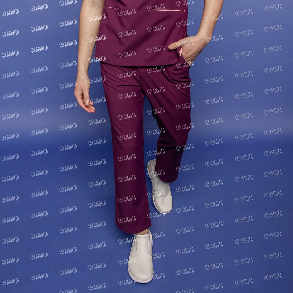 Мужские медицинские брюки от бренда PULSE выполнены в прямом крое со стандартной длиной. Модель имеет эластичный пояс на резинке и два боковых кармана. Данные брюки доступны в разных цветовых вариантах.