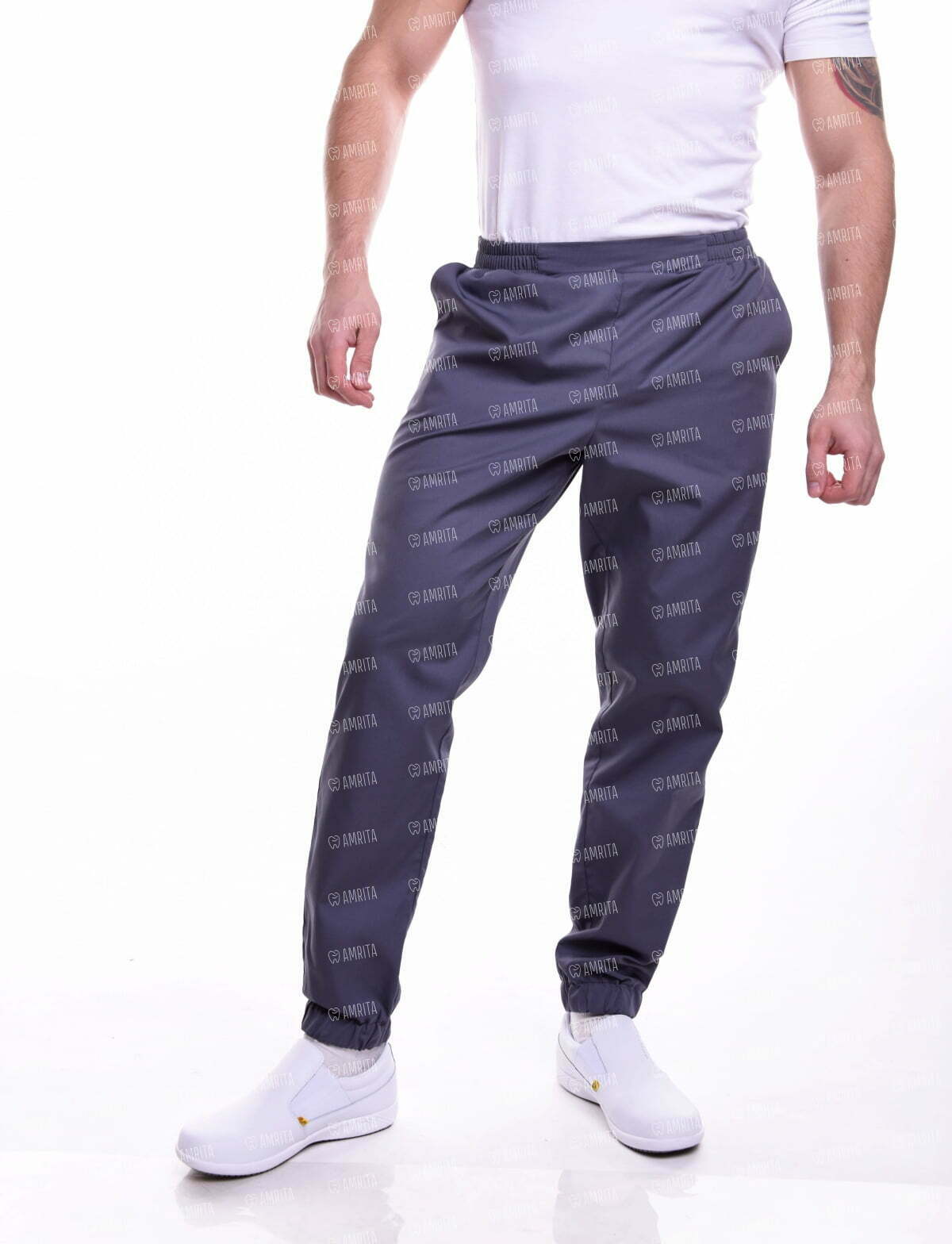 Мужские медицинские брюки "Релакс" имеют зауженный крой с полуприлегающим силуэтом. Модель дополнена комфортным эластичным поясом, двумя передними внутренними карманами и эластичными манжетами на резинке снизу. Ткань средней плотности, обладает стрейч-эффектом, за счет чего обеспечивает комфорт и удобство в течение рабочего дня.