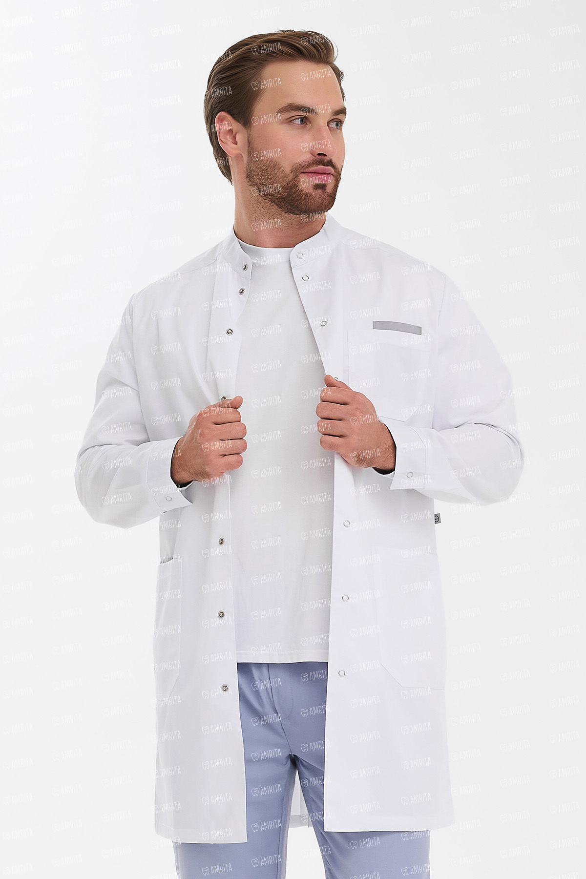 Мужской халат TZ810 от Тезис — это сочетание минималистичного дизайна, выверенной эргономики и профессиональной эстетики. Модель выполнена из прочной смесовой ткани: хлопок в основе отвечает за комфорт и воздухопроницаемость, полиэстер обеспечивает износостойкость, а спандекс придает необходимую эластичность для свободы движений.