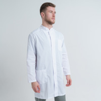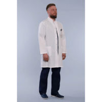 Мужской медицинский халат 68ТСД от производителя СтильБ имеет современный крой, длинный рукав с манжетами и воротник стойку. Изделие застегивает на пуговицы спереди и дополнено двумя накладными карманами и одним нагрудным.