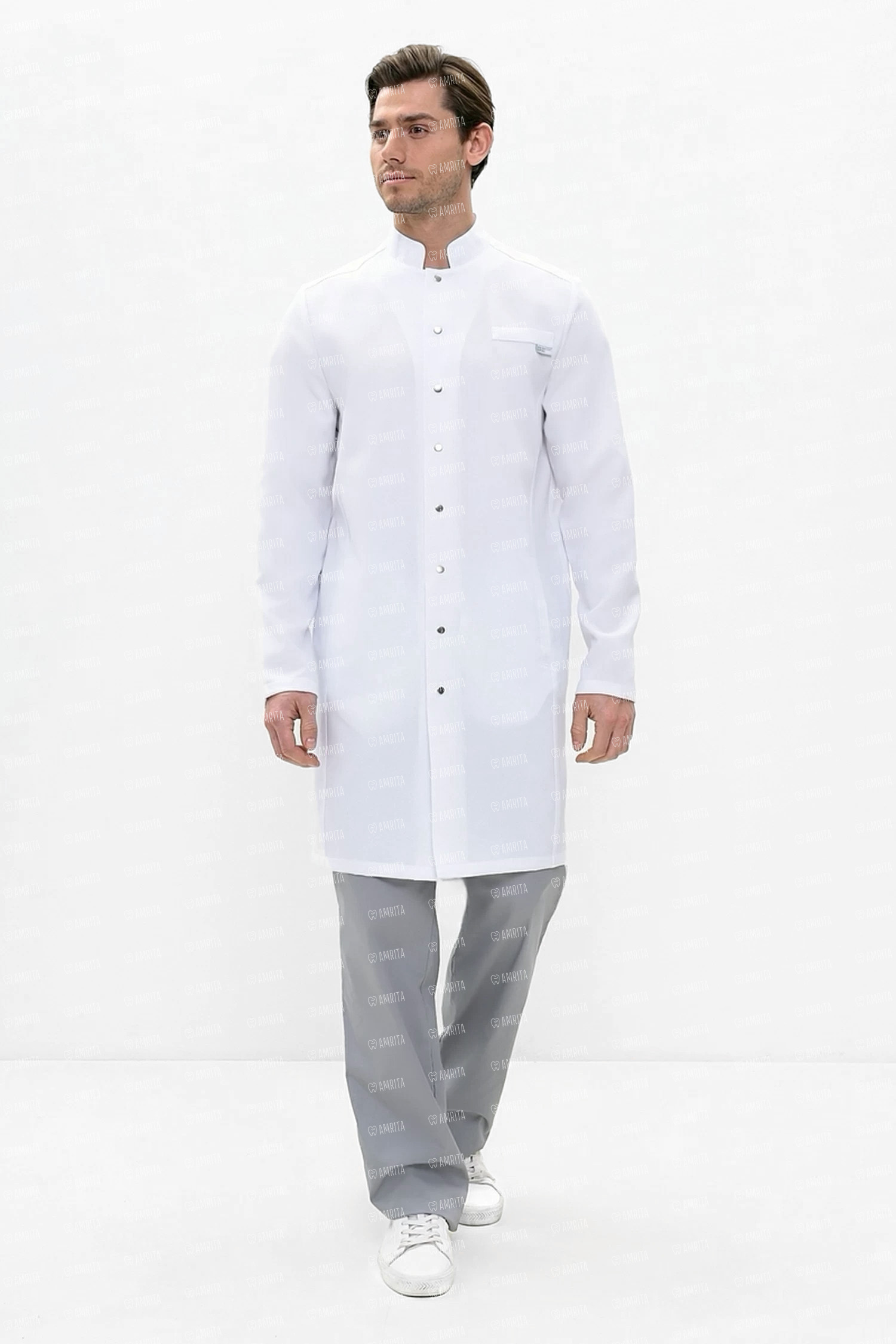 Создайте безупречный профессиональный образ с мужским медицинским халатом 584 Streich от бренда Doctor Big. Эта модель — идеальный баланс между элегантной классикой и инновационной практичностью.
