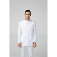 Мужской медицинский пиджак от бренда Dr.Nice имеет длинный рукав, воротник-стойку, разрез-шлицу сзади, один нагрудный карман и два передних накладных. Изделие застегивается на пуговицы спереди.