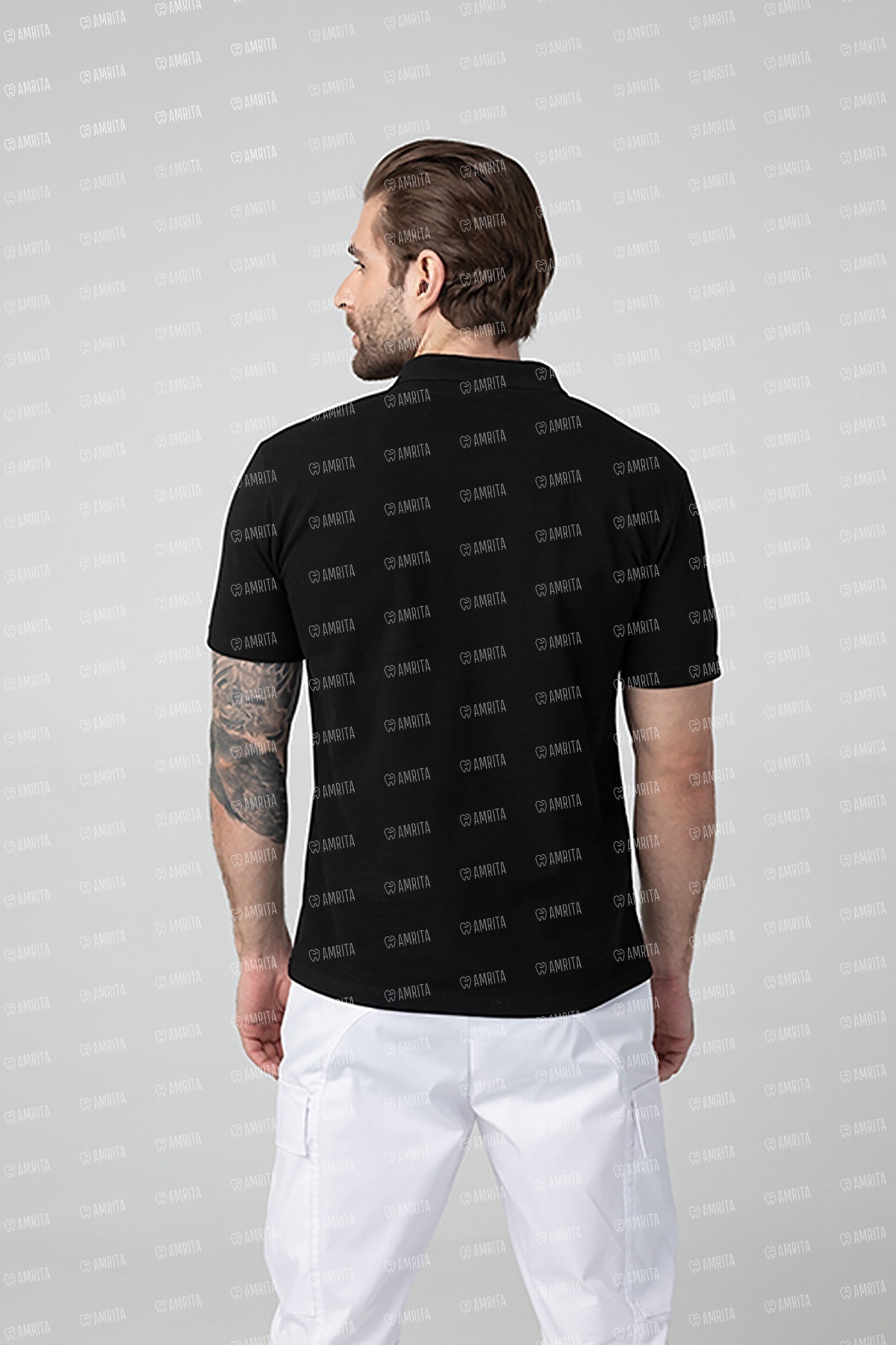 Мужская медицинская рубашка поло Dr.Nice с коротким рукавом и отложным воротничком. Застежка на пуговицах, в боковых швах имеются разрезы.