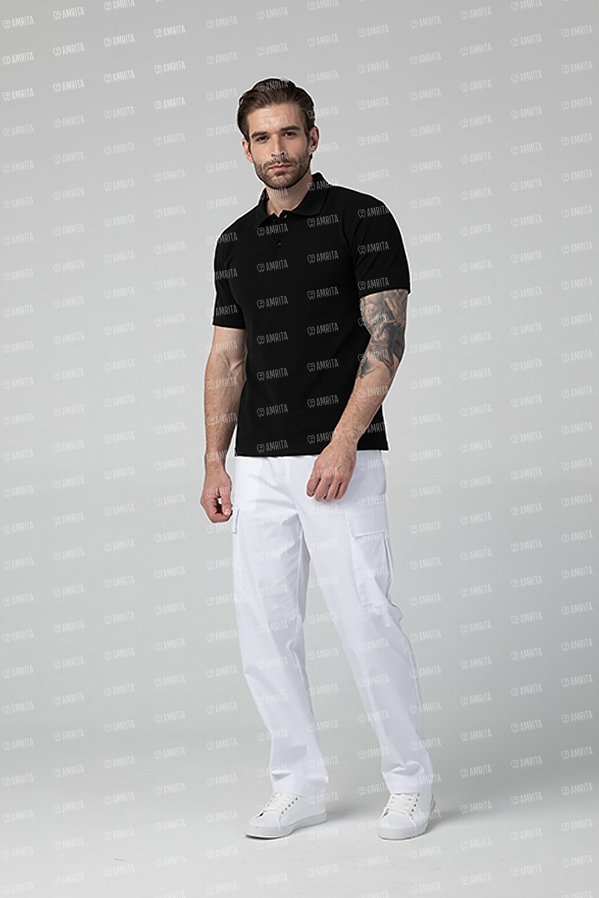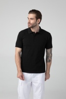 Мужская медицинская рубашка поло Dr.Nice с коротким рукавом и отложным воротничком. Застежка на пуговицах, в боковых швах имеются разрезы.